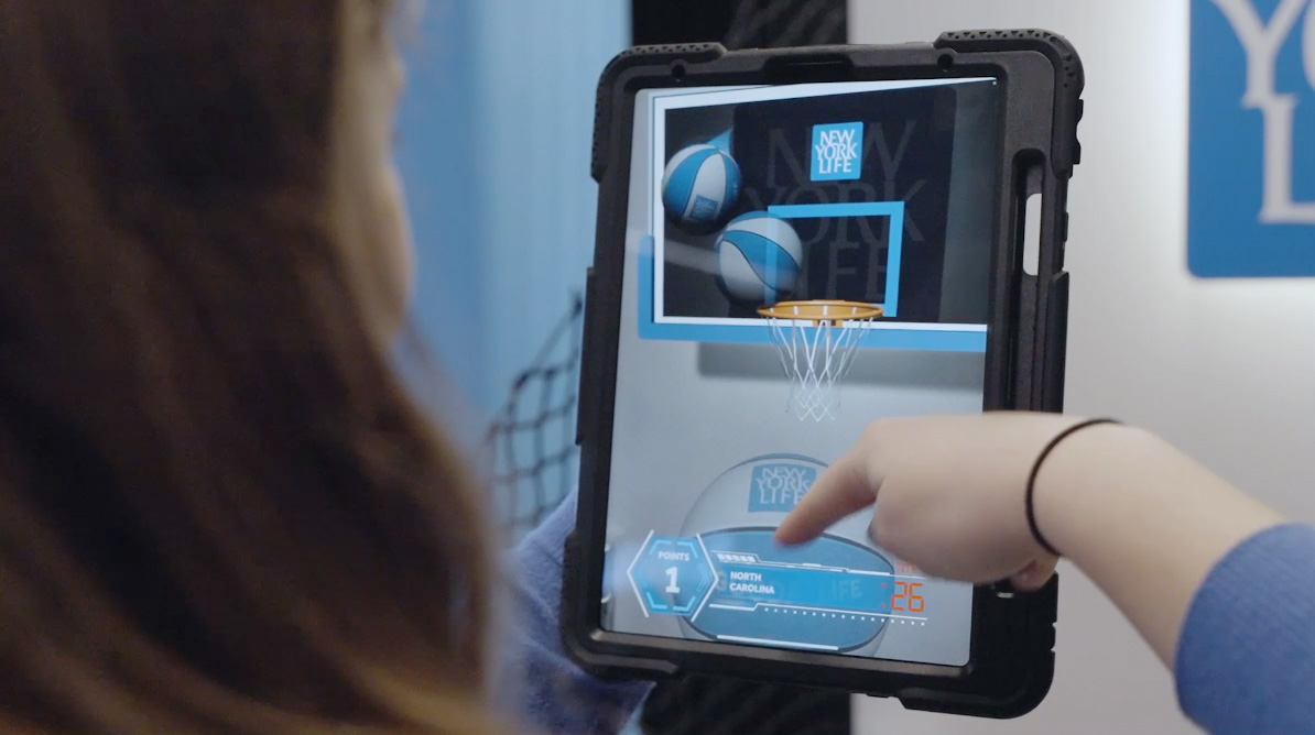 New York Life Coffee Labs COFFEE developed three activation for three NCAA stadiums, including a pop-a-shot AR iPad kiosk game, pop-a-shot AR mobile game, and a gesture-based AR virtual booth.